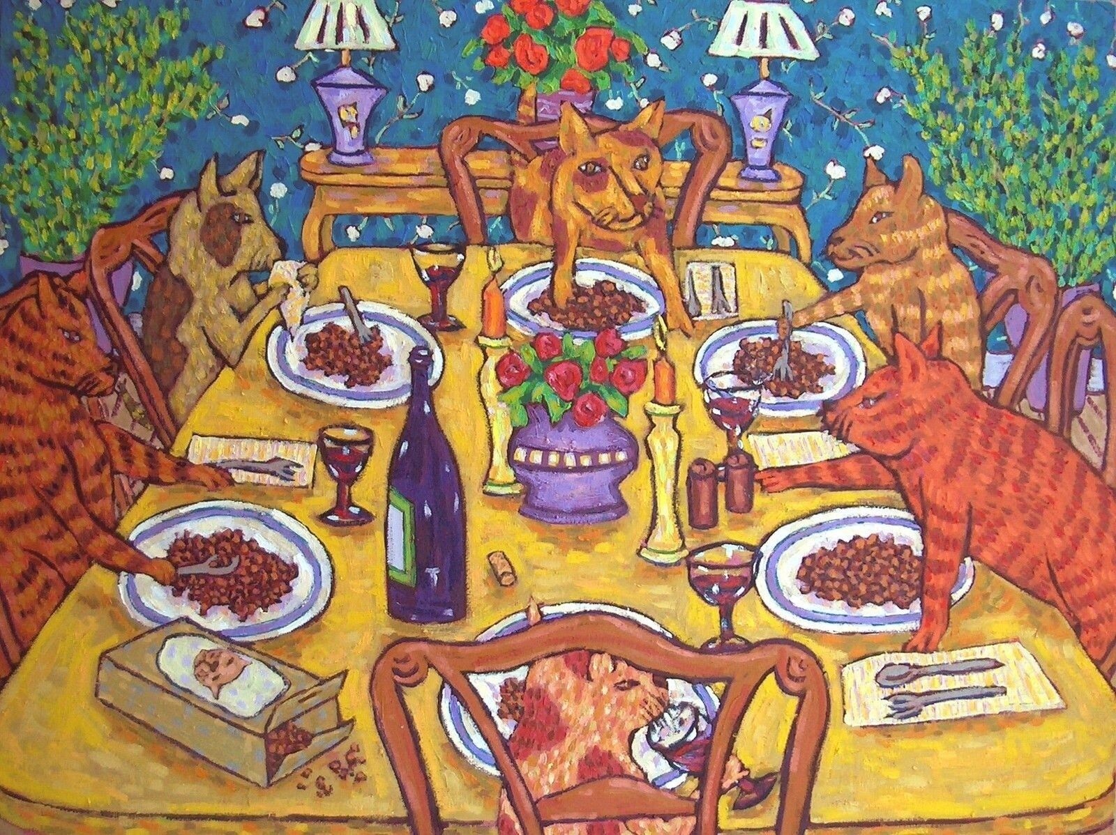 A cat that had helped itself to salmon mousse prepared for an upcoming dinner party later turns up dead. The cat and dog paintings a 70 x 50 cm painting with the picture of the dog painting cat and cats having a cat dinner party showing as cropped to share the art projects in progress. Season pork with salt and pepper. Register for party cat dinner cruise at key west vacation. Remove pork from heat and transfer to a plate.